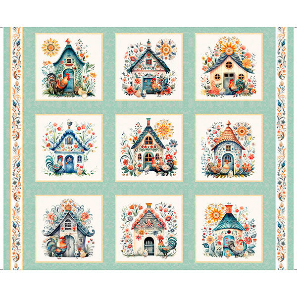36" panel. Roosters, hens, chicks, and sunflowers show off their homestead with pride. Gorgeous picture patches with an abundance of coordinates allow for lots of great décor and accessory projects. Mix and match the bold and soft colorways of Poultry in Motion by the Morris Creative Group for Quilting Treasures. 100% Cotton 44" Wide Colors in this fabric: Sage Green, Orange, Teal, Tan, Brown, Black, Blue, Pink, Coral Manufacturer Item #: 2600-30841-H